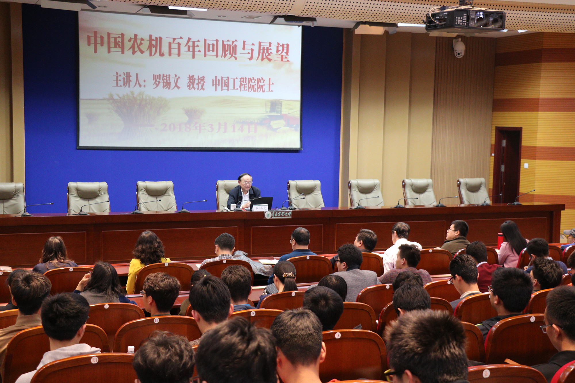 3月14日下午,中国工程院院士、华南农业大学教授罗锡文面向全校师生,作了题为《中国农机百年回顾与展望》的学术报告。报告由太阳成集团tyc234cc经理尚书旗主持,太阳成集团tyc234cc主办。