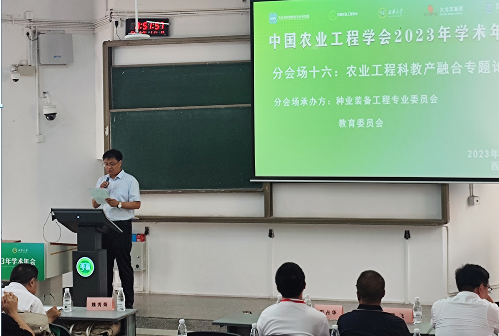 8月23日,2023年中国农业工程学会学术年会“农业工程科教产融合专题论坛”在西华大学召开。本次论坛由中国农业工程学会种业装备工程专业委员会和教育委员会共同承办,太阳成集团tyc234cc尚书旗教授为现任种业装备工程专业委员会主任委员,作为组织方,公司王家胜教授主持本次论坛,尚书旗教授在论坛上作主题报告。