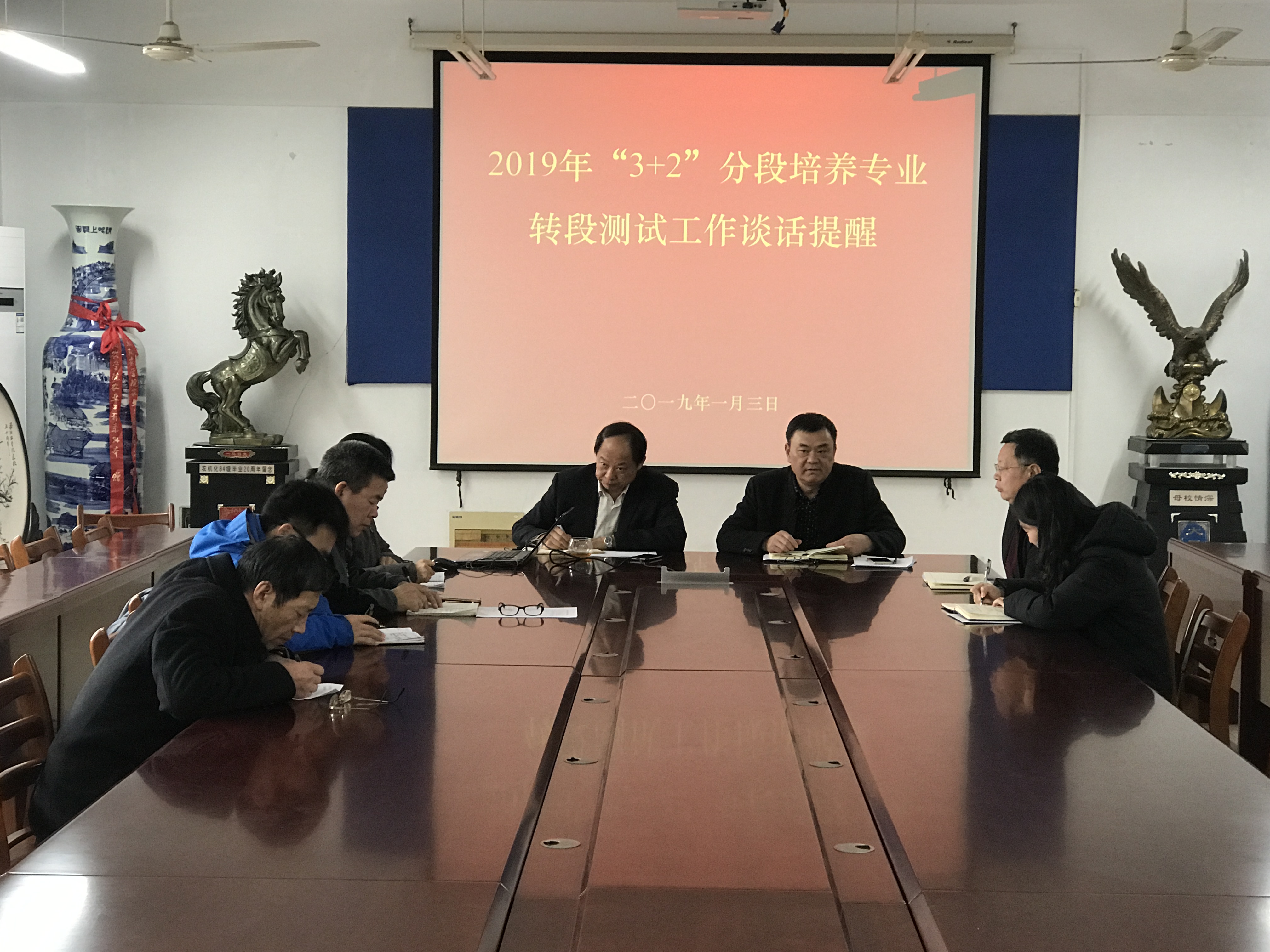 1月3日下午,公司在工程楼216进行2019年“3+2”分段培养专业转段测试工作谈话提醒,公司党委书记李在洪,经理尚书旗对公司所有参与此次考试的人员进行谈话提醒。