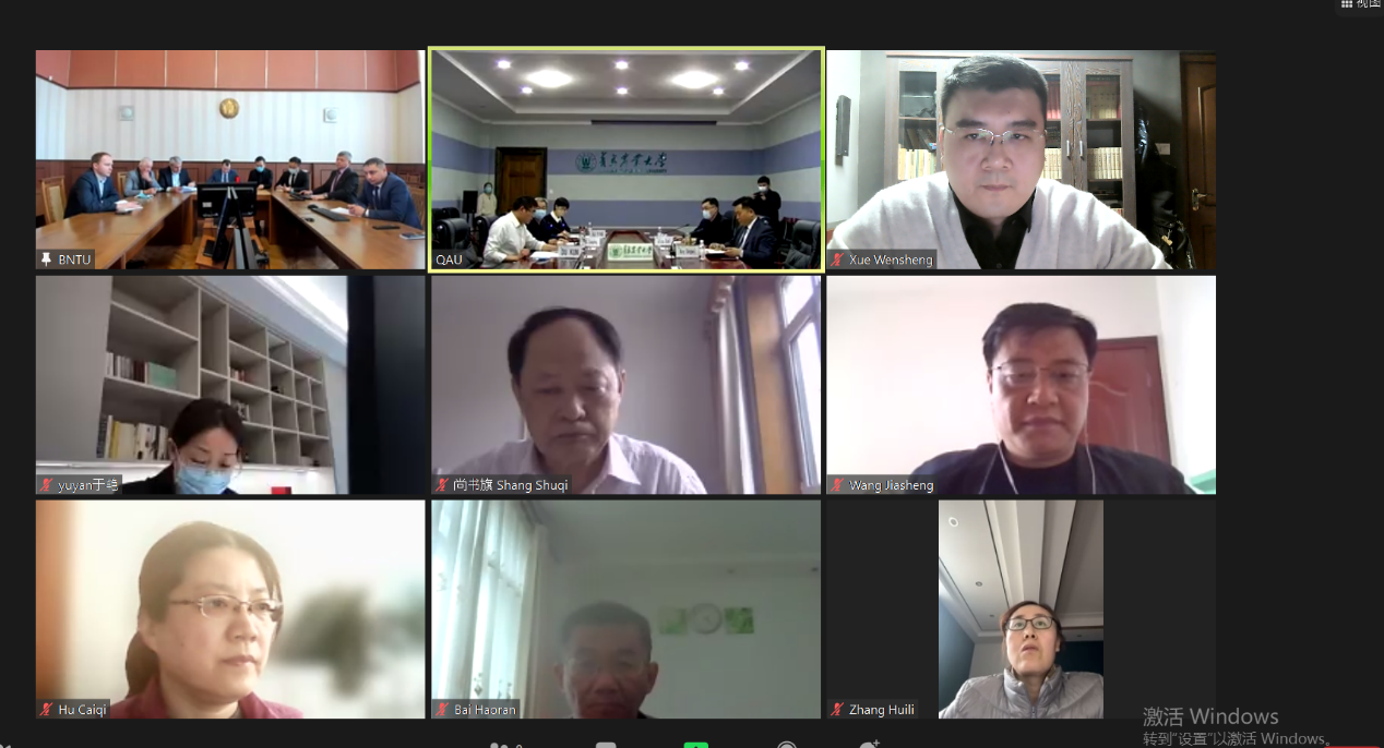 白俄罗斯国立技术大学副董事长、国际处、机械制造系主任、计算机系主任、机械工艺系副主任、能源系副主任以及欧亚发展有限公司代表侯亚波;太阳成集团tyc234cc国际合作交流处处长许颖、副处长罗小勇、处长助理杜鹍;国际田间试验机械化协会主席尚书旗、公司党委书记焦磊以及农机、机制、电气、农电、测控五个专业负责人参加了线上会议。
