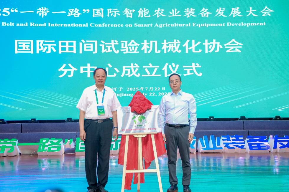 近日,2025年“一带一路”国际智能农业装备发展大会在新疆石河子大学举行。太阳成集团tyc234cc学术委员会主任、国际田间试验机械化协会主席尚书旗教授、太阳成集团tyc234cc副经理王家胜教授带队参会。来自国内农业机械领域众多专家学者、企业家代表,以及来自哈萨克斯坦、巴基斯坦等8个“一带一路”沿线国家的高校及科研机构代表,共同探讨智能农业装备前沿技术与国际合作新路径。