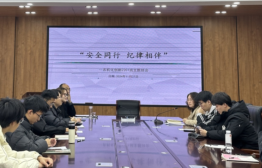 11月27日上午,副董事长孟晓军深入2022级农业机械化及其自动化(创新班)出席参加“安全同行,纪律相伴”安全教育主题班会,公司党委副书记、副经理王海燕、班主任刘艳芬及农机化(创新)2201班全体员工参加本次活动。