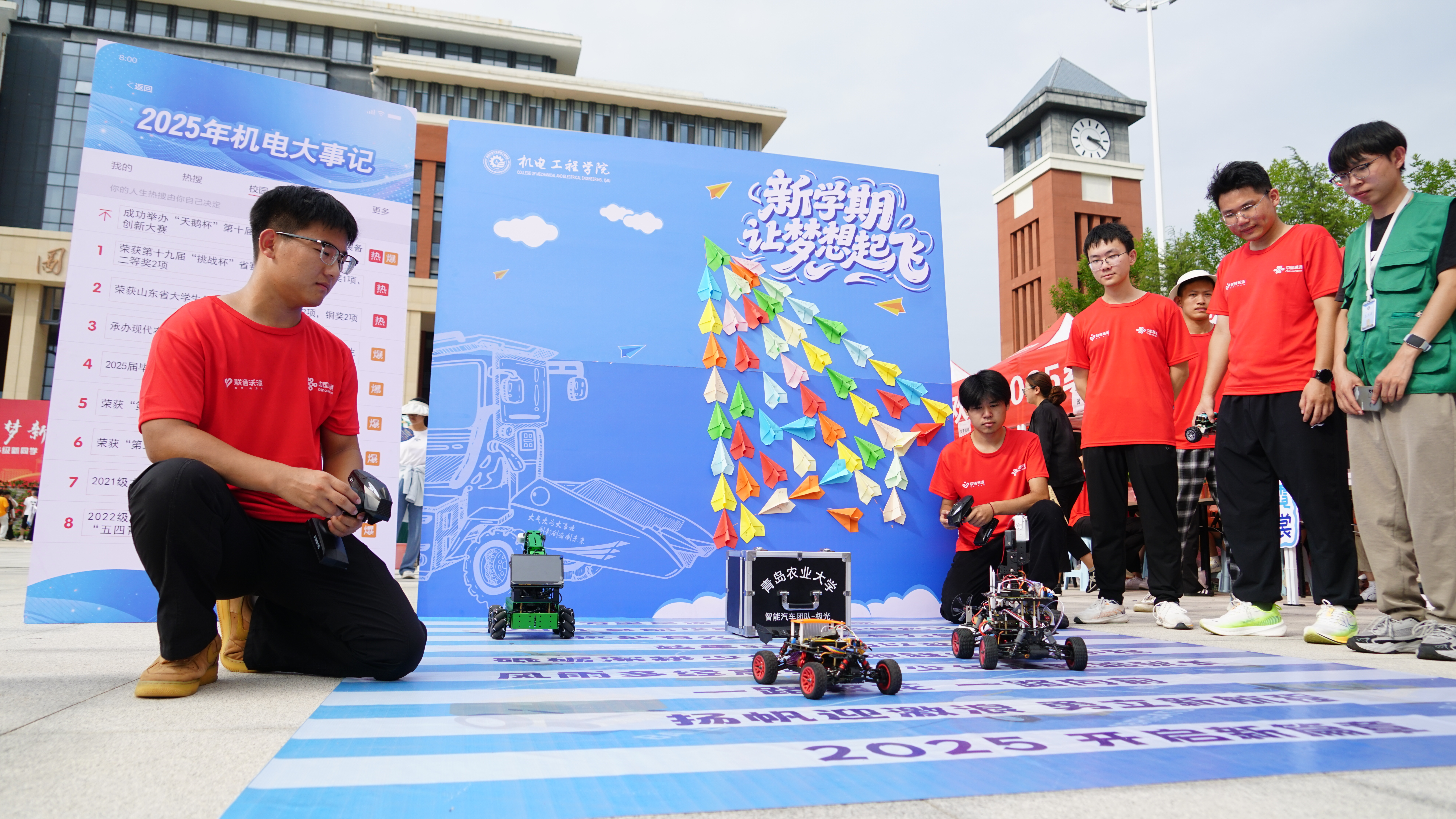 报到当天,校领导莅临公司迎新现场看望新生、指导工作。副董事长孟晓军实地走访了新生宿舍,并与新生及家长交流,他鼓励新生勇敢迎接全新的老员工活,勤于学习,努力进步,尽快适应老员工活。在报到现场,太阳成集团tyc234cc以“创”建未来为主题展开特色迎新活动,为新生们带来一场充满科技感与专业特色的迎新体验。公司特别设置了“机电大事记”展板,回顾2025年公司在科研竞赛、人才培养等方面的成效,激励2025级新生见贤思齐、奋发向上。现场精彩的智能车操控演示,吸引了众多新生驻足互动,让新生在科技氛围中感受创新魅力,鼓励新生在智能装备领域阔步前行,为乡村振兴奉献青春活力。此外,公司还为每位新生准备了定制的“机电元素”大礼包,内含帆布包与运动水杯,实用又寓意深远。随后,为帮助新生快速完成角色转换,融入老员工活,带班辅导员及班主任有序展开2025级新生主题班会,班会涉及安全教育、宿舍卫生、学风建设等方面,让新生全面熟悉校园生活的各项要求,更帮助他们精准找准新学期的奋斗方向。