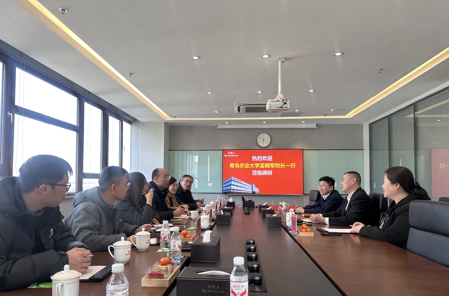 孟晓军代表公司感谢大牧人公司多年来对公司建设发展给予的大力支持和帮助,并详细介绍了公司在人才培养、团队建设、科研创新等方面的基本情况。他表示,青岛大牧人作为畜牧装备领域的领军企业,校企合作基础坚实、前景广阔。希望以此次走访为契机,在毕业生就业、实习实训基地建设、科研项目联合攻关等方面建立长效合作机制,实现校企资源互补、互利共赢。