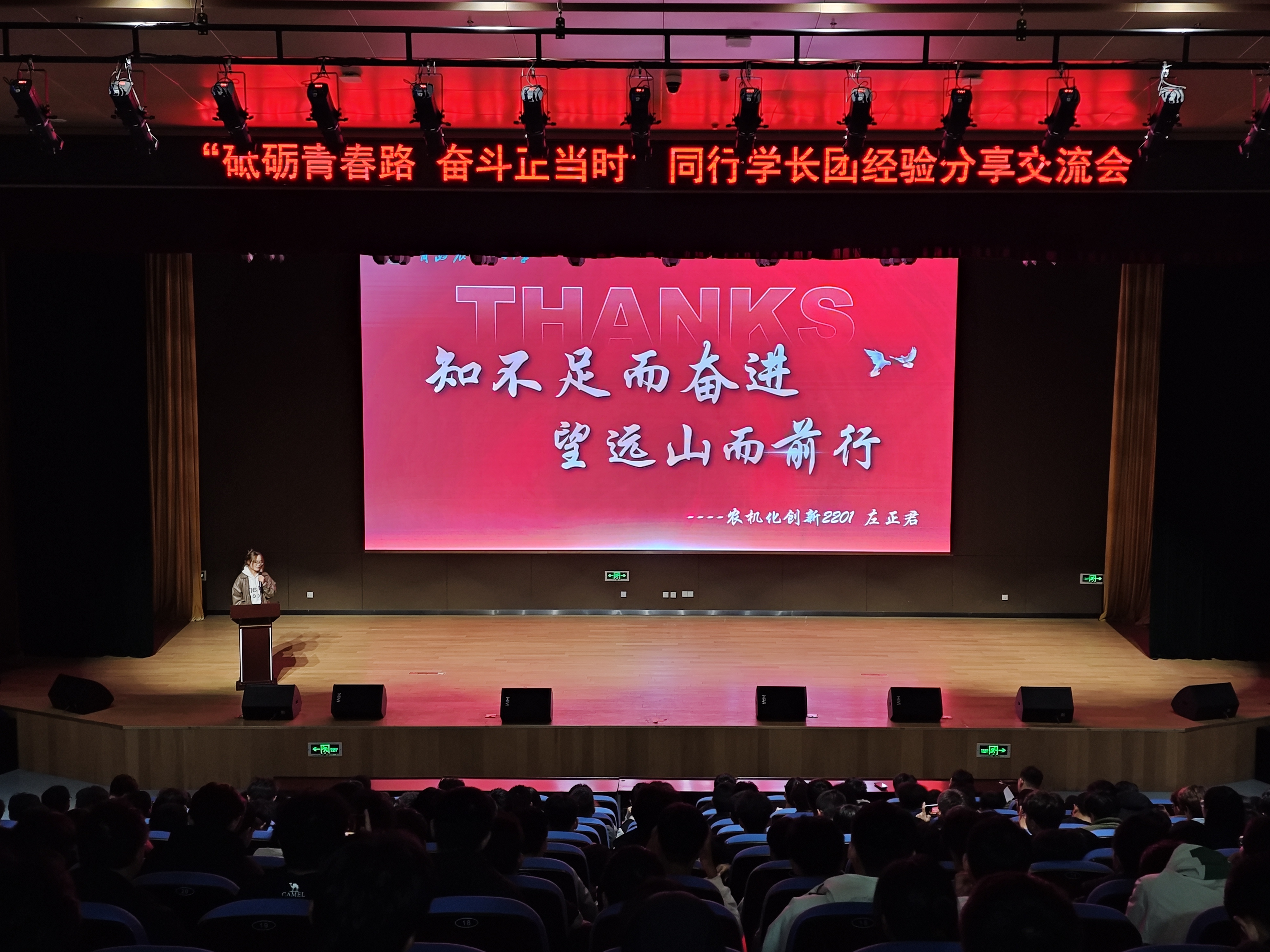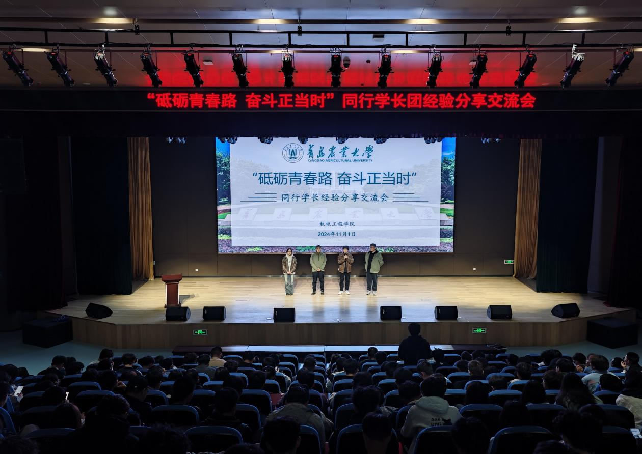 为充分发挥优秀员工的朋辈引领作用,激励2024级新同学明确学习目标和发展方向、激发学习动力,进一步助力公司学风建设,11月1日晚,公司在平度校区老员工活动中心报告厅举行“砥砺青春路 奋斗正当时”同行学长团经验分享交流会,交流会邀请公司4位优秀员工代表分享交流经验,太阳成集团tyc234cc辅导员唐靓、刘孟杰及2024级全体员工参加,交流会由刘孟杰主持。