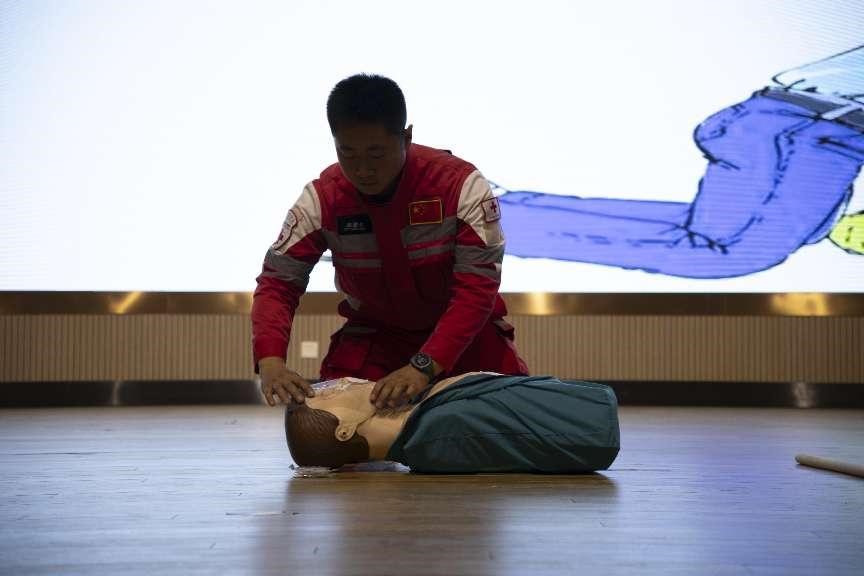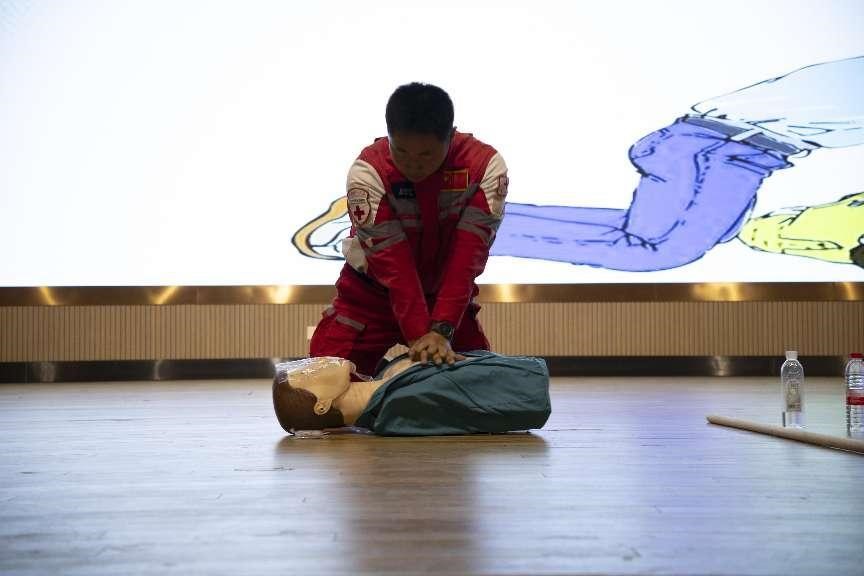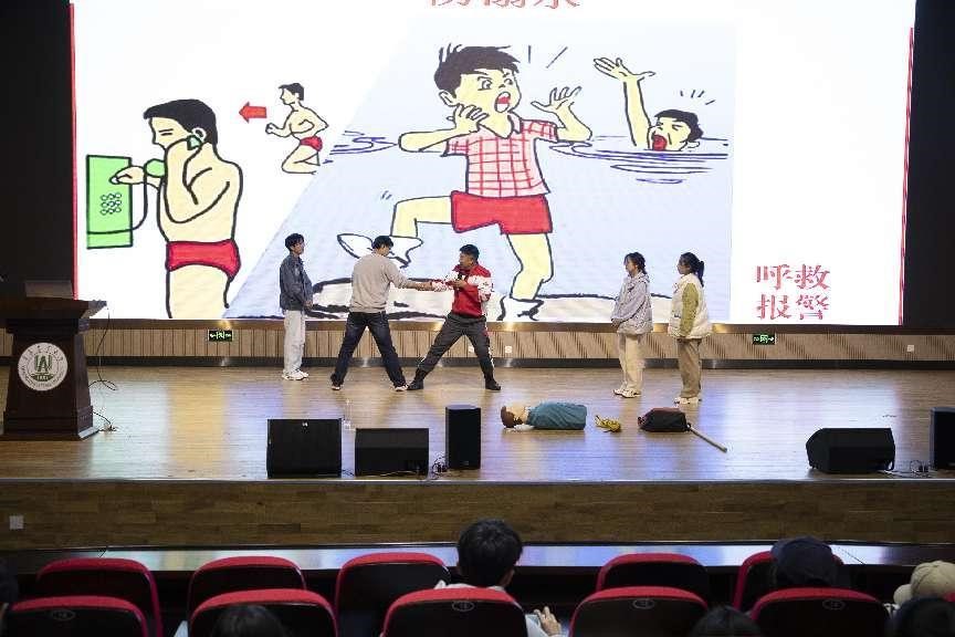 讲座中,甄仁向从“如何预防溺水”和“落水后如何自救”两方面结合案例同学们详细讲解防溺水的安全知识,并教授同学们如何正确判断水域安全。随后,通过体验式教学的方式演示了水下抽筋时如何自救、遇到溺水时如何呼救等相关内容,并向大家传授溺水时的自救互救和心肺复苏方法,进一步教育引导员工正确认识和科学参与有关防溺水活动,树立安全防范意识。活动最后,同学们纷纷上台在专业教师指导下进行溺水救援模拟练习,进一步掌握了溺水应急救援的动作要领和救助技能。
