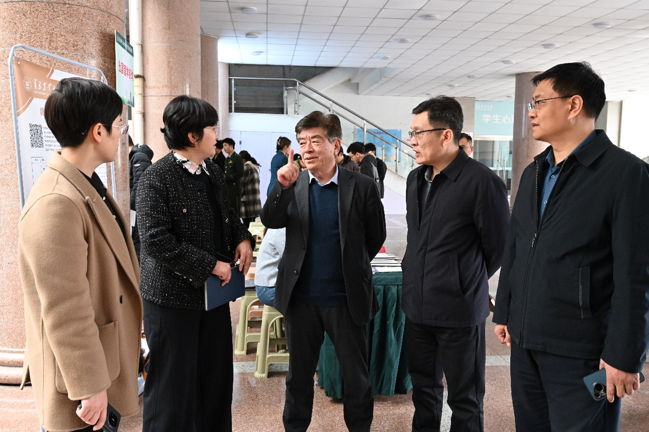 本次招聘会邀请了中国重汽集团青岛重工有限公司、潍柴雷沃智慧农业科技股份有限公司、豪迈集团股份有限公司等104家用人单位参与招聘,累计提供500余个岗位需求,岗位类型丰富、涉及领域广泛、专业匹配度高,为广大2025届毕业生提供了多层次的就业选择。田义轲一行到场与用人单位和应聘员工进行交流互动,深入了解行业发展态势和就业岗位需求。他强调,要开展有温度、有针对性的就业指导服务,对困难群体毕业生落实“一对一”帮扶。要加强政社企沟通联系,精准开拓市场化就业渠道,提高就业岗位供需对接实效,助推员工就业工作高质量发展。