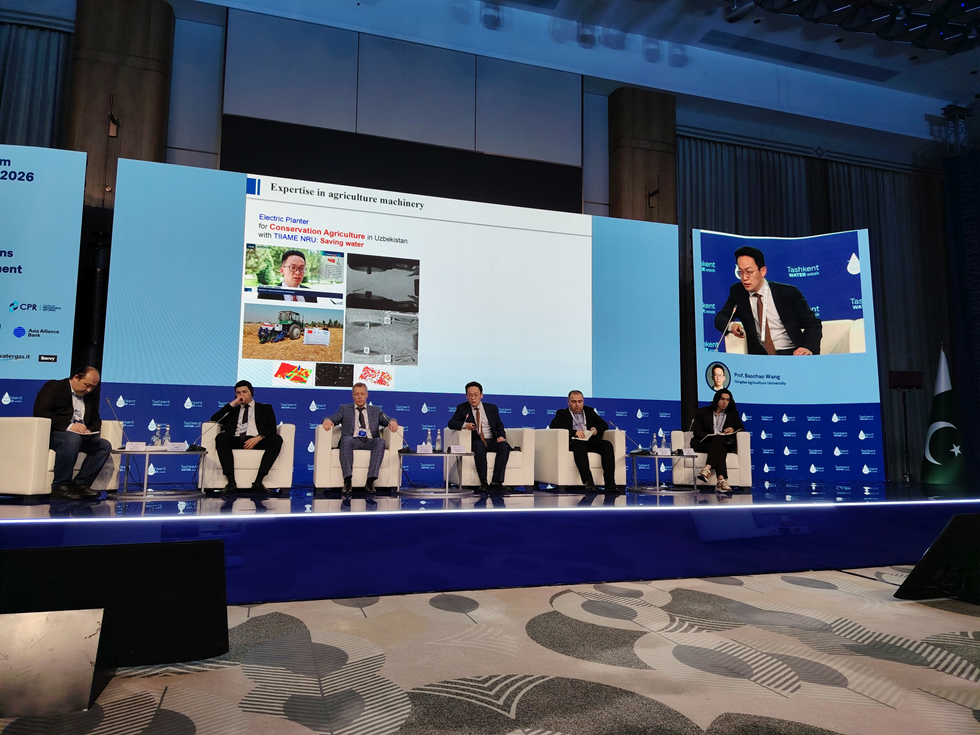 近日,太阳成集团tyc234cc尚书旗教授、王宝超教授参加“塔什干水周(Tashkent Water Week 2026)国际论坛”,并出席相关专题论坛及学术交流环节。论坛期间,尚书旗教授接受了乌兹别克斯坦国家新闻频道“Oʻzbekiston 24”电视台等媒体采访,就中国在保护性耕作与智能农机领域的研究进展进行了介绍。