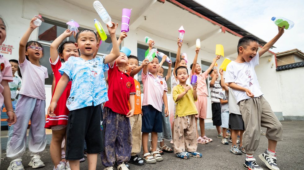 “探索宇宙的奥秘”课堂上,塑料瓶在酒精燃烧的澎湃动力下化身腾空而起的水火箭,划破宁静的空气,将孩子们的目光牢牢牵引至蔚蓝苍穹。“声音魔法师”活动,音叉的嗡鸣在空气中激起涟漪,孩子们亲手制作的小小乐器成为他们理解振动创造美妙旋律的第一把钥匙。“光影魔术师”环节孩子们亲手操作中,直观领悟了光线传播与小孔成像的科学原理,惊叹于这日常物品演绎的光学奇迹。