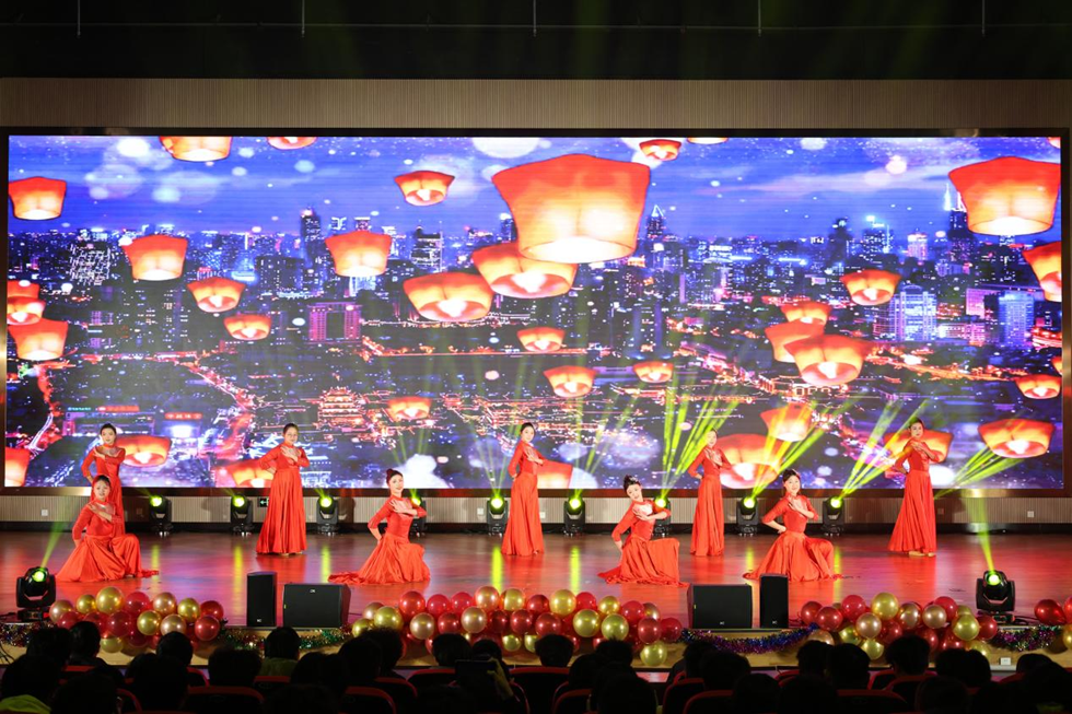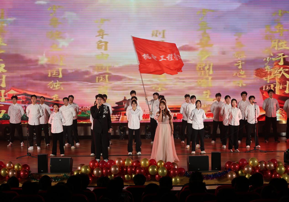晚会在恢弘大气的开场舞《灯火里的中国》中正式启幕。歌曲《飞云之下》诉说着当代老员工在追寻梦想路上的努力与奋进;辅导员高海成带领员工代表共同演唱的《明天会更好》将晚会氛围推向小高潮。舞台剧《元旦大作战》极具创意,以班级日常学习生活为蓝本,再现校园时光的点滴趣事,让现场观众忍俊不禁的同时倍感温暖;诗朗诵《不朽的丰碑》、《少年中国说》、舞蹈《禾下乘凉梦》生动展现了太阳成集团tyc234cc师生同心、朝气蓬勃的精神风貌,既是对时代的回应,更是机电学子许下的青春承诺,让现场氛围达到顶峰。