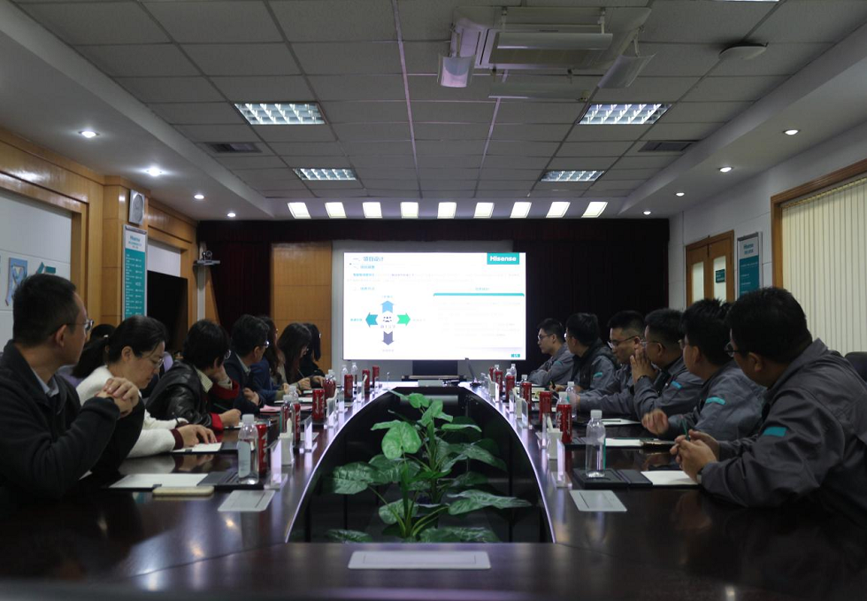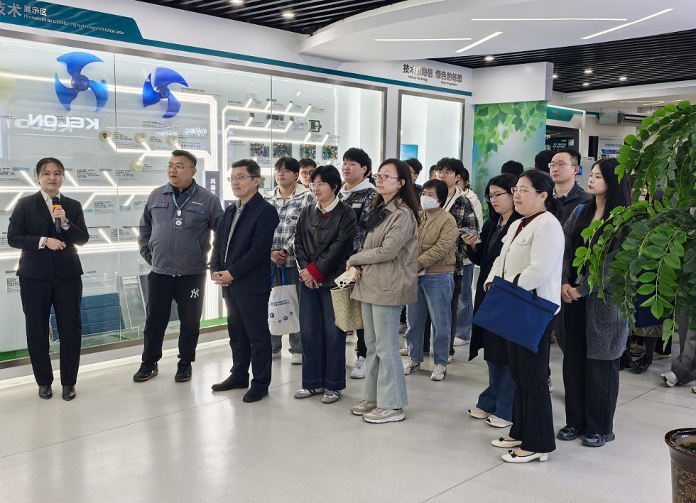 焦磊一行先后参观了海信集团山东家电产业园展厅、安全体验中心、两器外机车间、大数据技术中心,实地了解了海信空调从初创到引领的技术发展进程,近距离观摩了海信最新一代智能空调技术,全方位感受海信集团在智能家电领域的技术积淀与智能制造实力。在校企座谈交流会上,海信集团山东家电产业园总经理王庆玉对焦磊一行的到来表示热烈欢迎,并详细介绍了海信家电产业园的发展历程、产业布局及人才需求。他表示,海信始终重视与高校的产学研合作,期待能与公司在人才培养、技术攻关等方面建立合作,实现优势互补、互利共赢。焦磊代表公司对海信集团的热情接待表示感谢,并从团队建设、人才培养、科研创新等方面介绍了公司的基本情况,希望与海信集团在员工实习实训就业、科研项目联合攻关、产学研协同创新等方面深度合作,共同推动双方协同发展。