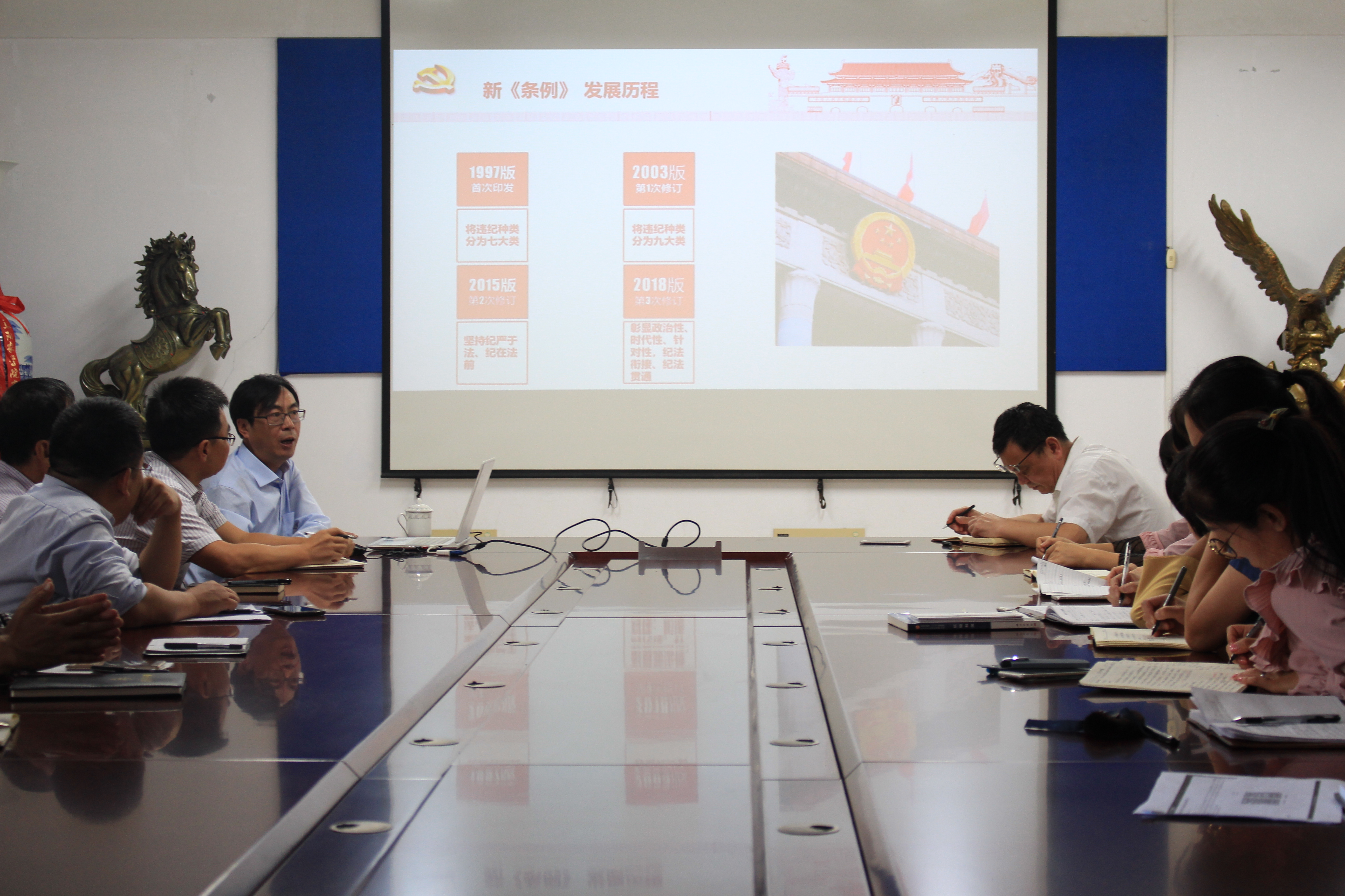 公司党委书记李在洪要求全体党员干部充分认识学习贯彻新修订《条例》的重要意义,原原本本学,联系实际学,深入思考学,深刻理解新修订《条例》的精神实质,要把党的纪律刻印在心上,落实到行动上,党员领导干部要以身作则、率先垂范,先学一步、学深一步,当标杆、作表率,全体党员干部要进一步增强纪律观念,遵守党的纪律不动摇,时刻用党的纪律严格规范自己的言行,把思想和行动统一到中央精神上来。